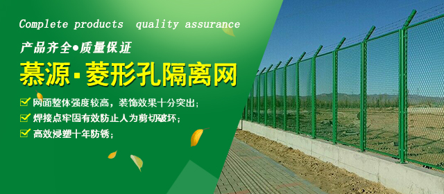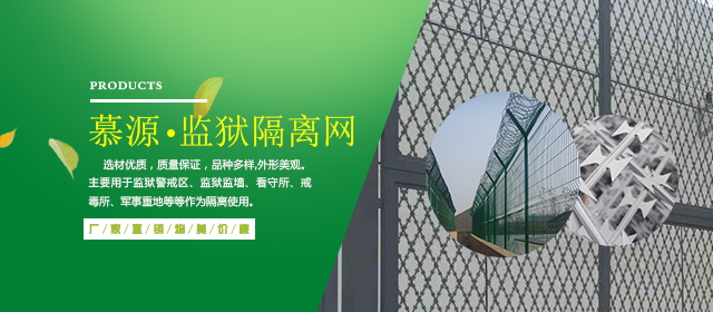 安平县慕源丝网制造有限公司坐落于世界最大的丝网生产基地,拥有中国"丝网之乡"美誉的河北省安平县,地处京、津、石三大城市之间,交通便利,地理位置优越。公司主营产品:监狱隔离网、看守所隔离网、菱形孔隔离网、保税区隔离网、水源地隔离网、桃型柱隔离网、双边丝护栏网、养殖护栏网、圈地护栏网、机场围栏网、体育场围网、草坪围栏、通线铁路栅栏、高速公路隔离网、防眩网等等;产品广泛用于高速公路和、铁路、桥梁两侧的防护带;机场、港口、码头的安全防护;市政建设中的公园、草坪、动物园、池湖、道路、及住宅区的隔离与防护;宾馆、酒店、超市、娱乐场所的防护与装饰......